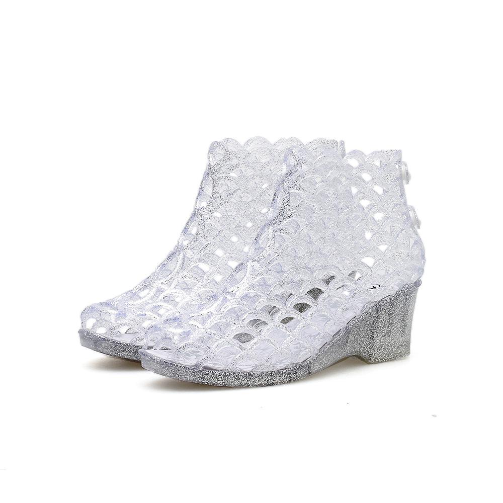Women’s High heeled Fish Mouth Sandals Women’s Casual Sandals Crystal Glitter Transparent Bird Nest Hollow Mesh Shoes Hole Shoes